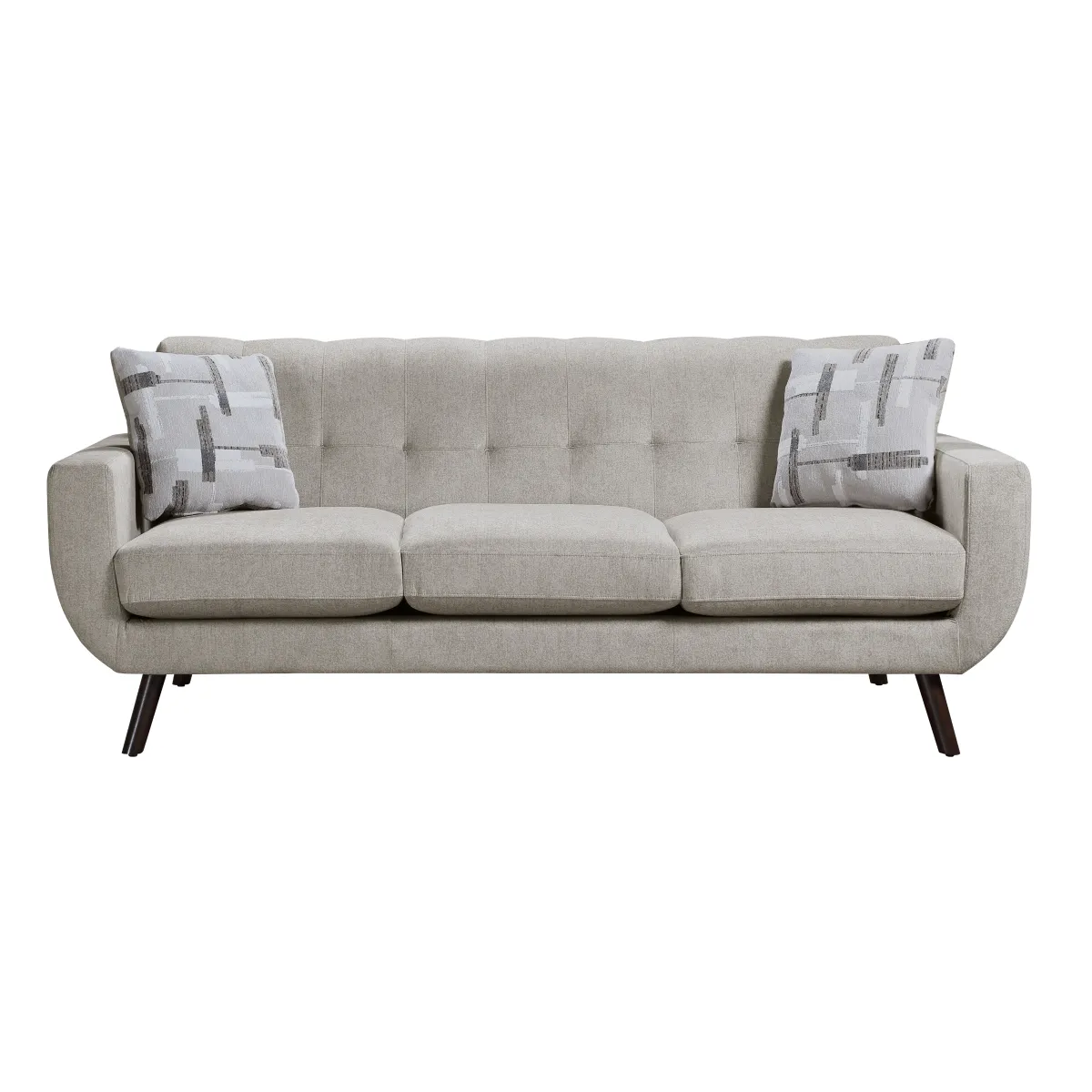 Soft, inviting fabric upholstery in a versatile tan hue.