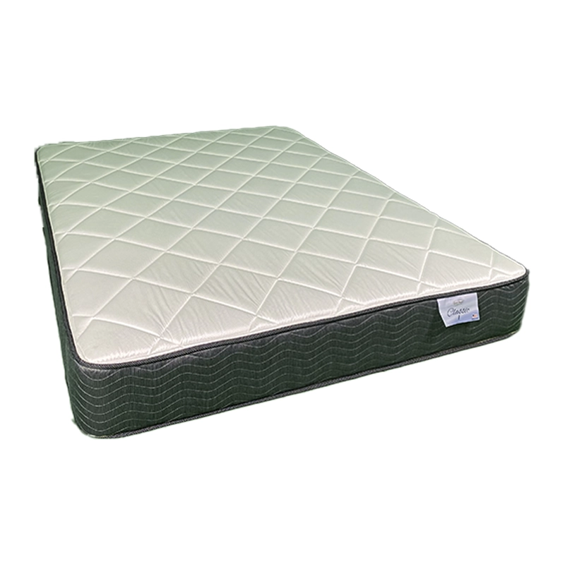 Experience classic comfort and dependable support with the Velari Classic I Plush Mattress. This American-made mattress features a quilted white damask fabric, infused with layers of polyester and cotton fiber along with firm support foam for a luxurious feel. Engineered with a 416-coil 13-gauge innerspring system and dual layers of extra-firm fiber board, it provides stable full-body support while minimizing motion transfer. Reinforced with steel spring edge supports and a limited deflection boxspring, this mattress ensures a durable and reliable night’s sleep for years to come.