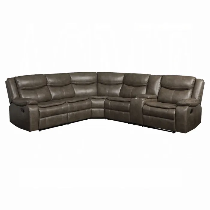 This Taupe Leather-Aire Sectional Sofa is a perfect combination of vintage-inspired comfort and modern convenience. Upholstered in soft Leather-Aire, it features dual reclining end seats, a console with built-in cup holders and storage, and pillow-top armrests for optimal relaxation. With its tight seat and back cushions, metal reclining mechanism, and durable hardwood frame, this “L”-shaped sectional brings timeless style and functional seating to your living space.